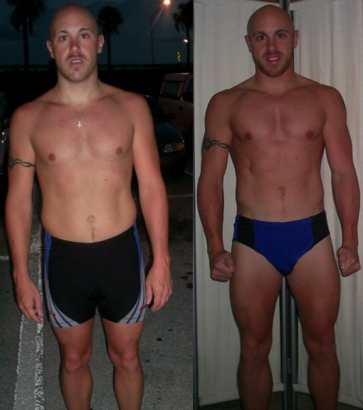 My first bit of inspiration will be my before/after pics from September 2007 and December 2007...showing the effects that proper nutrition and a good training routine can have.